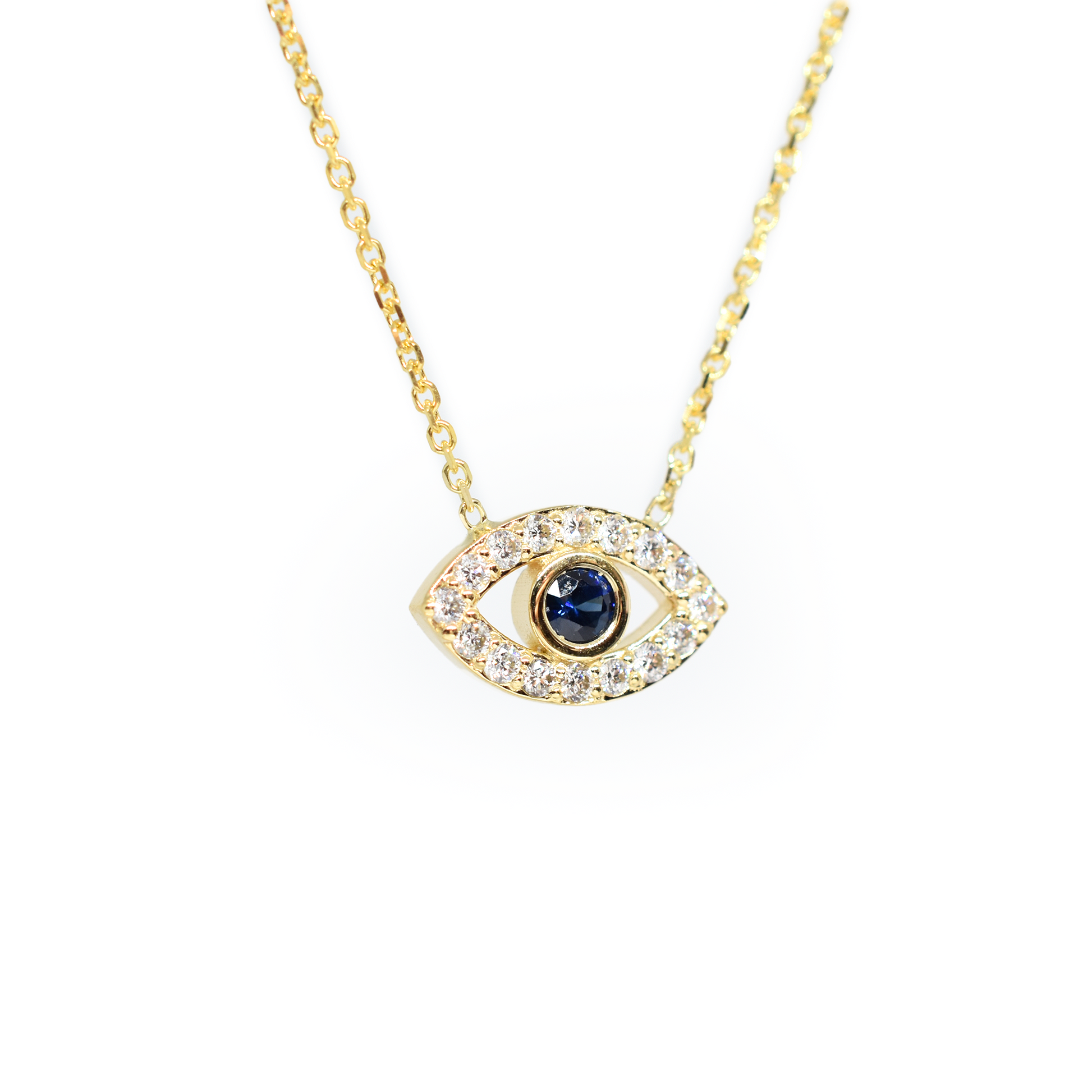 14k Diamond and Sapphire Evil Eye Necklace