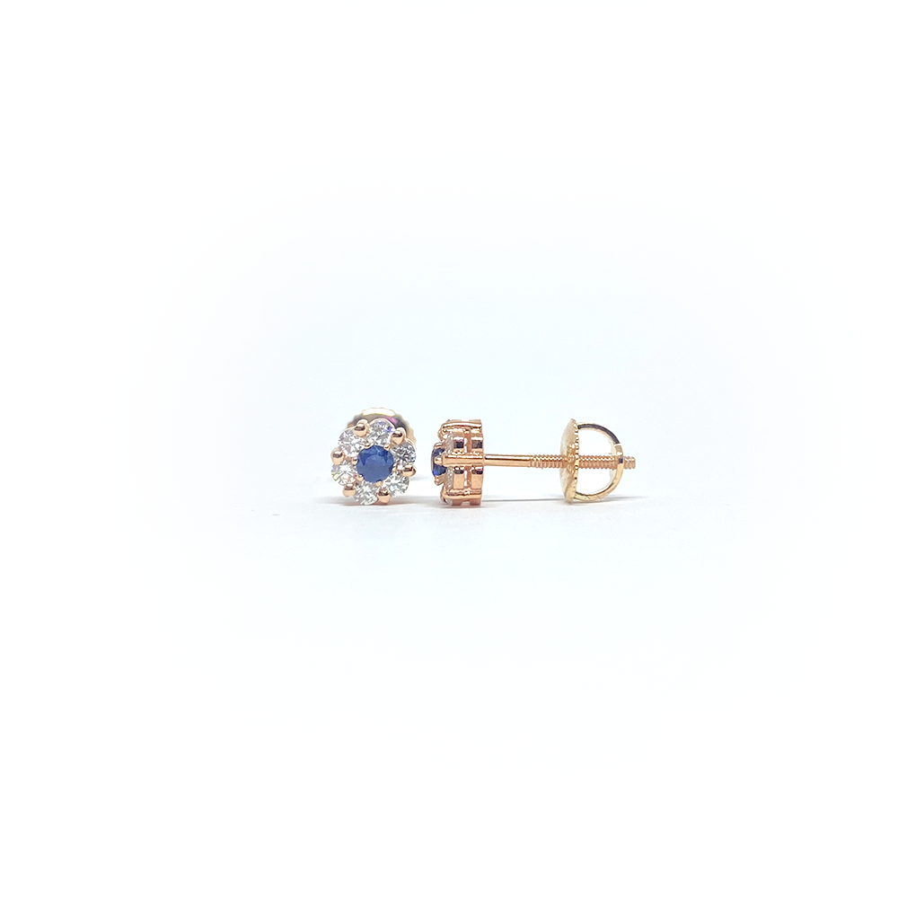 14k Diamond Sapphire Cluster Flower Earrings