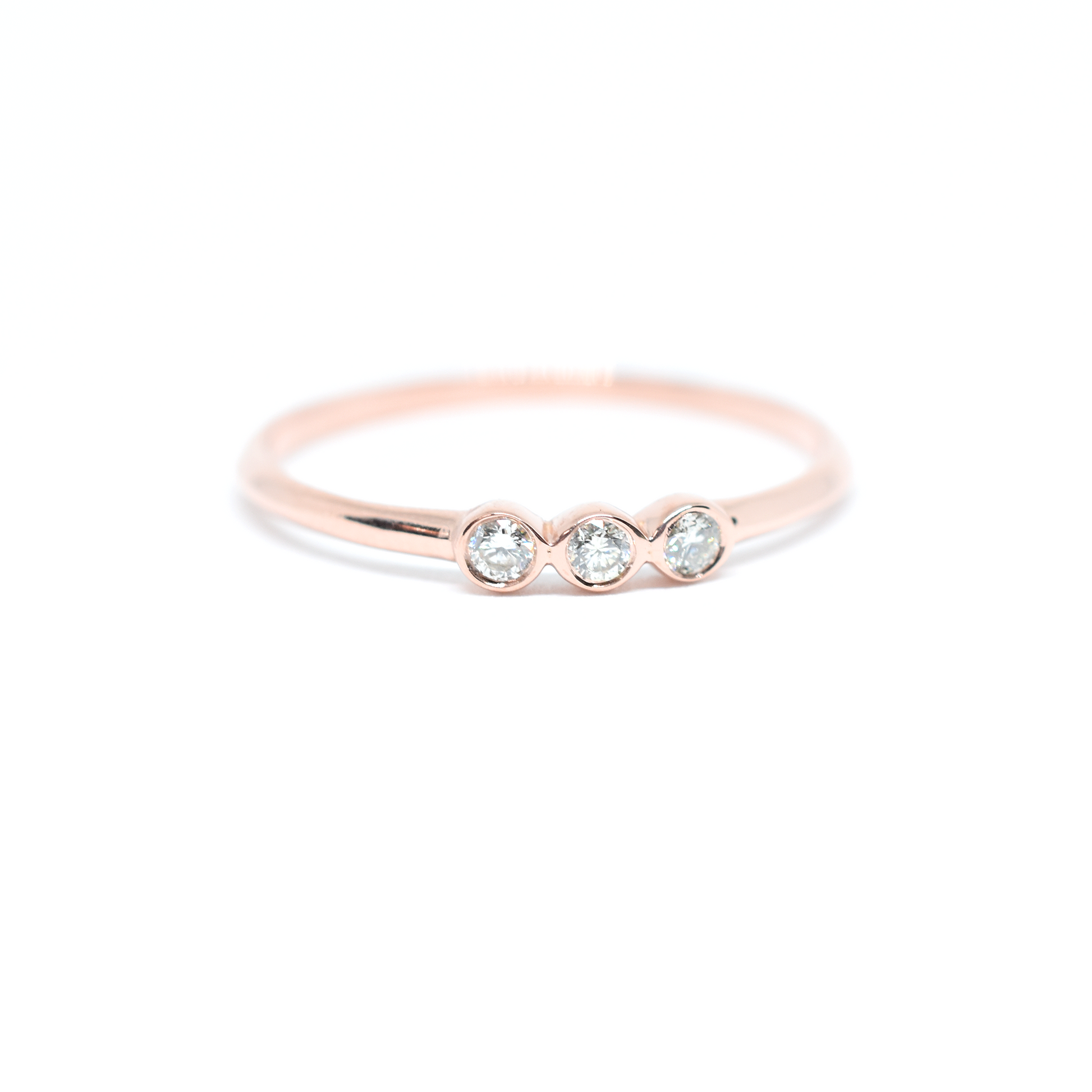 14k Triple Diamond Bezel Ring