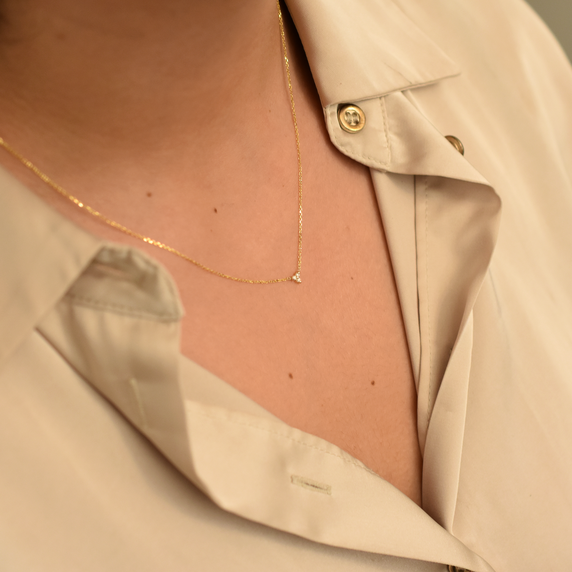 14K Gold Diamond 3 Stone Cluster Necklace | 0.05 Carat | mini Dainty cluster