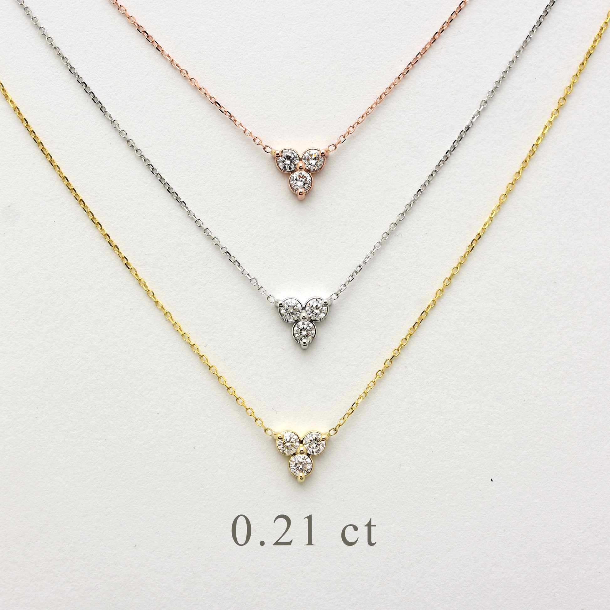 14K Gold Diamond 3 Stone Cluster Necklace | 0.21 Carat | Elegant Jewelry