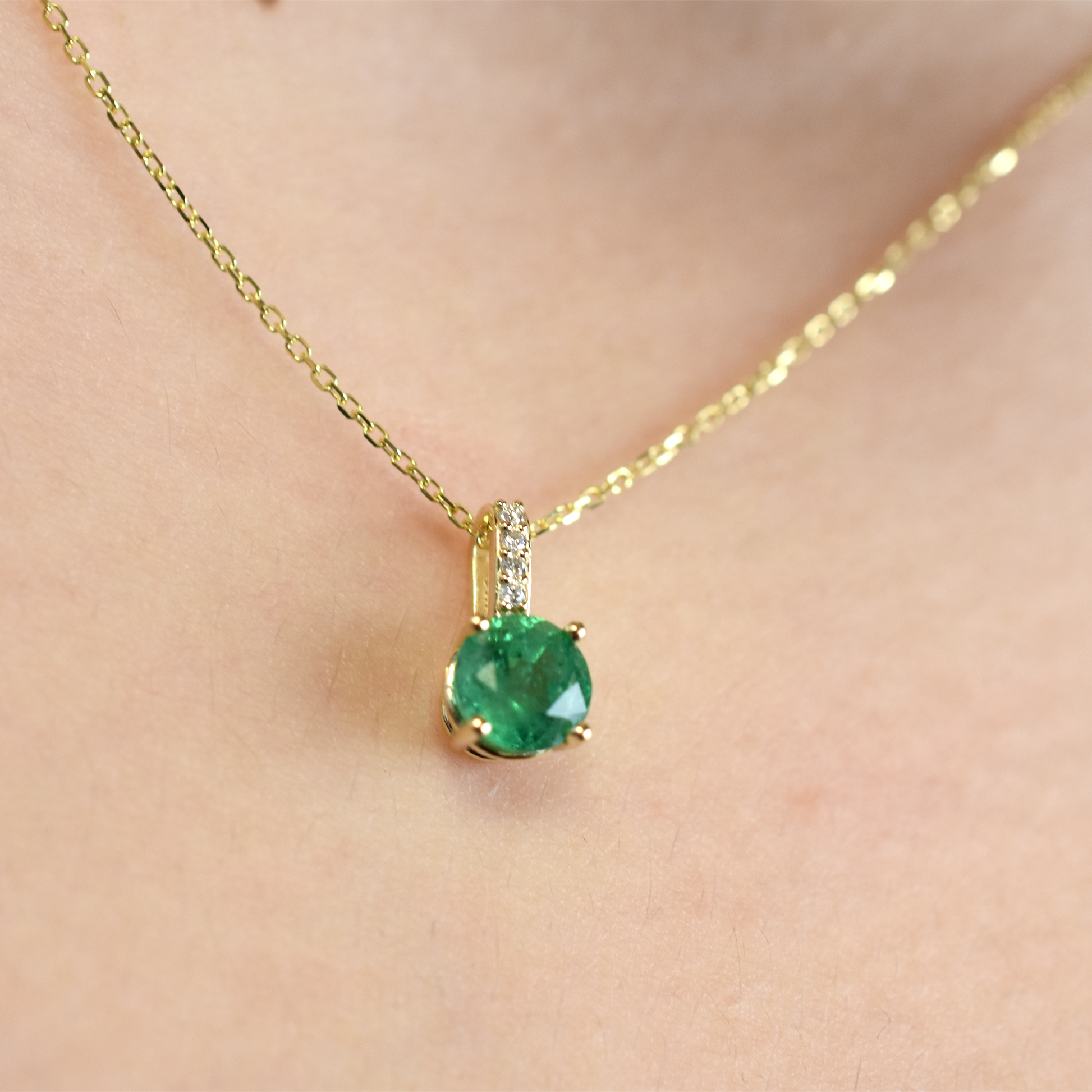 14k Gold Emerald Diamond Necklace