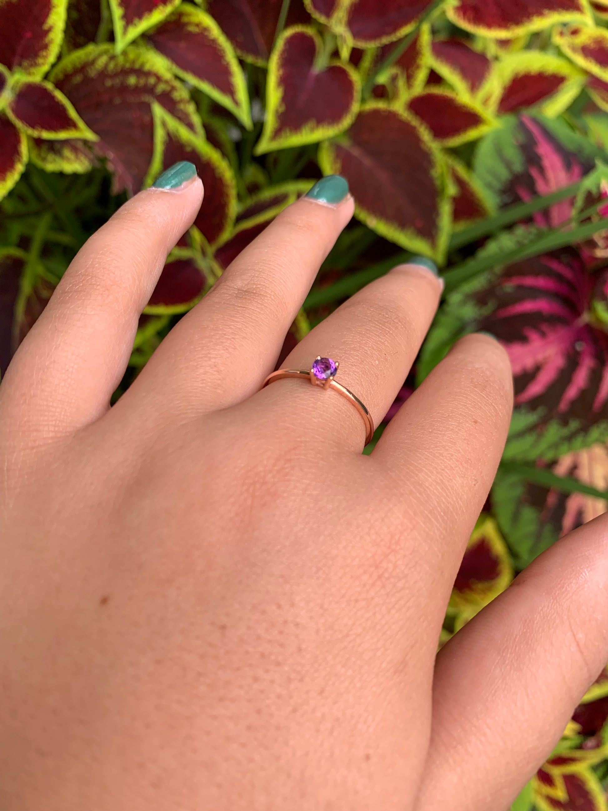 Perfect for: February birthstone, dainty stacking ring, promise ring, or everyday wear