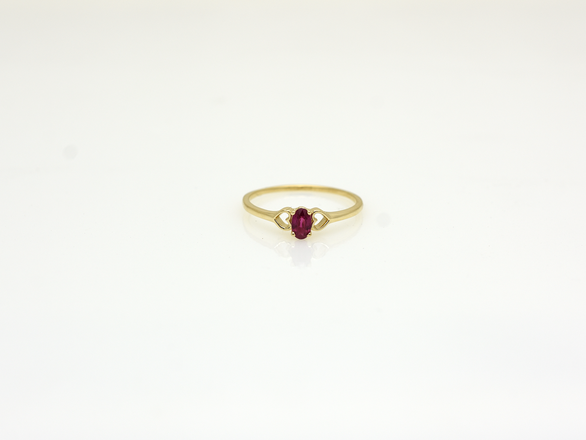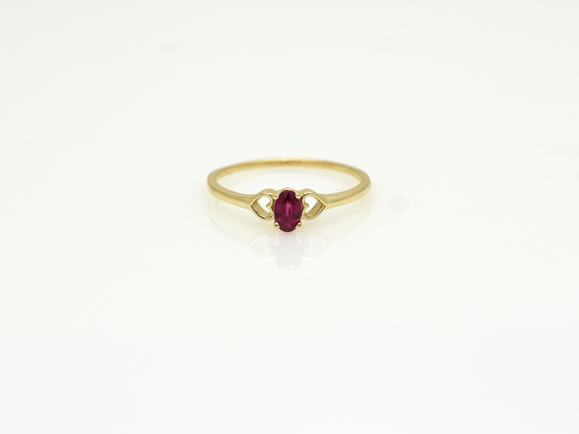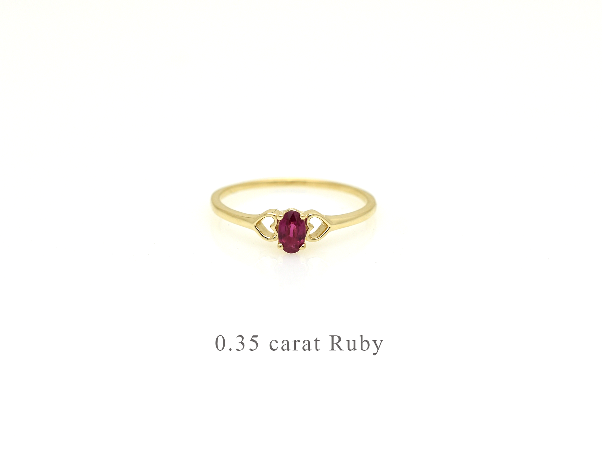 - This oval-shaped ruby is natural set in a 4 prong setting . accented with a heart design on the sides comes in all three 14 k yellow gold, 14 k white gold,14 k rose gold.
