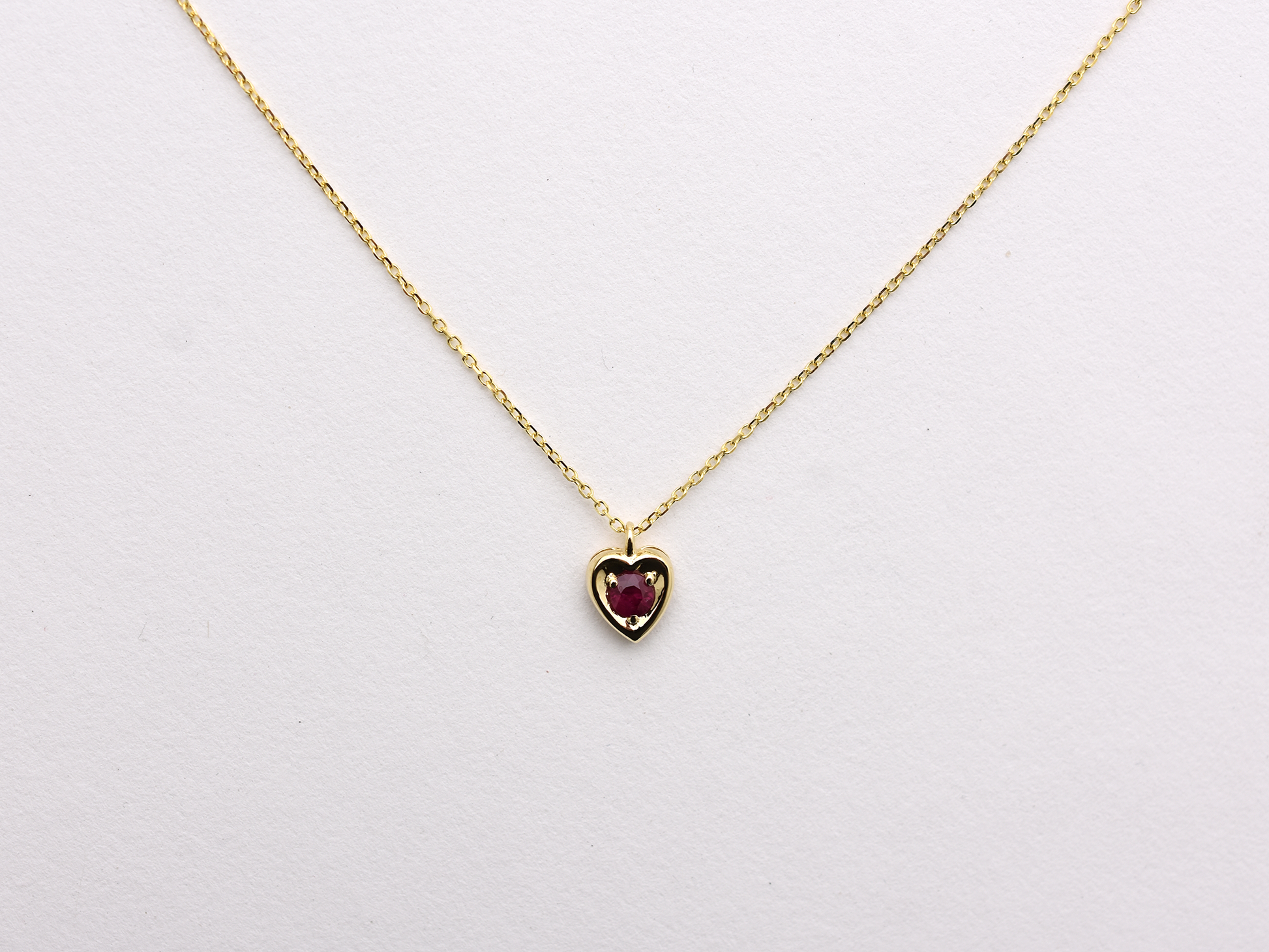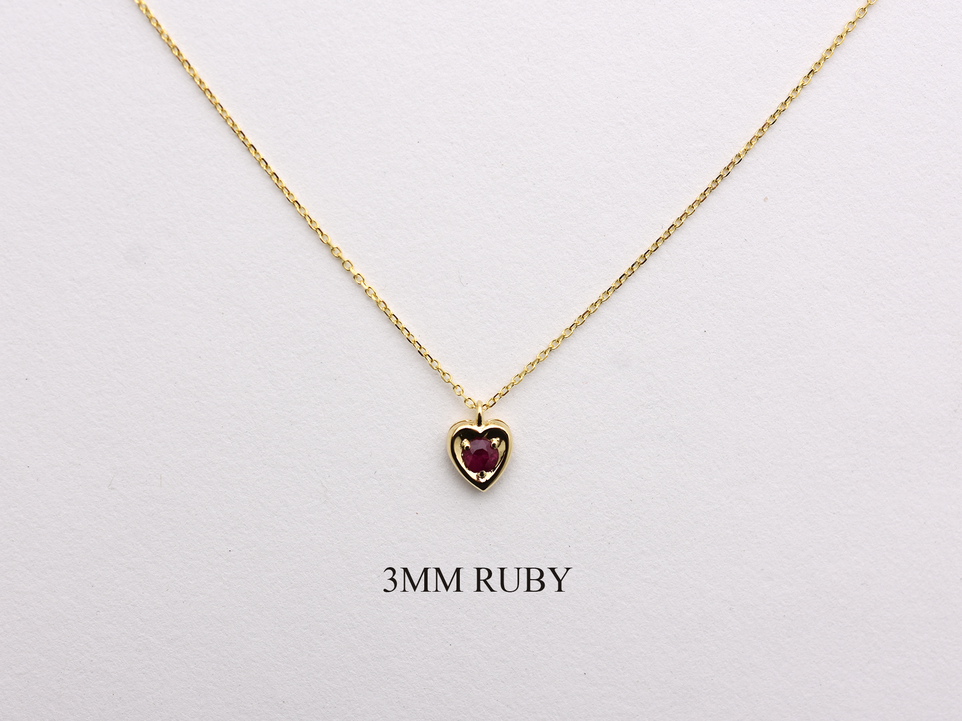 Display your affection with this dainty minimalistic Ruby heart necklace . perfect for everyday and layering effect on your favorite outfit. the ruby is natural 3 mm and is July birthstone