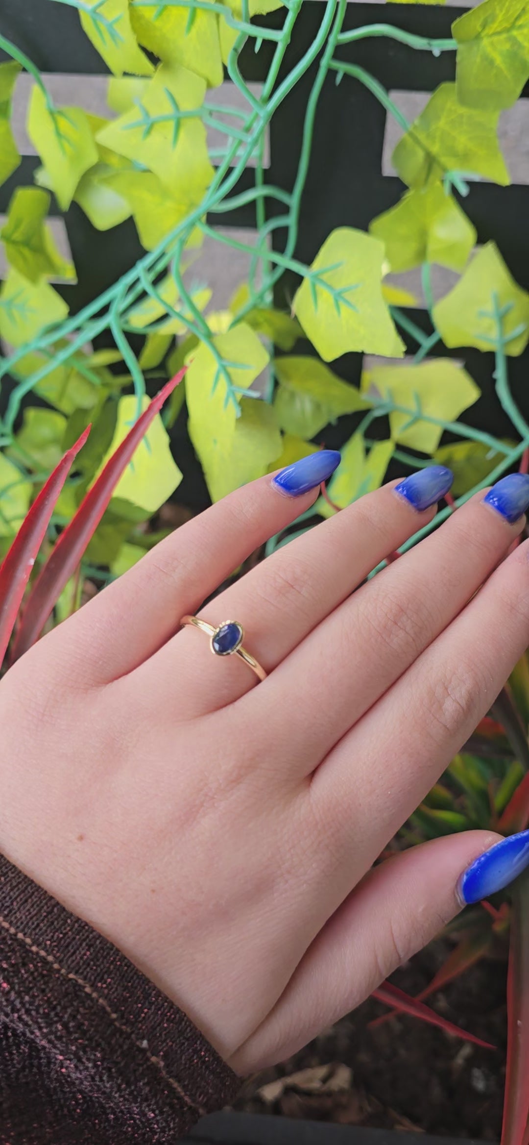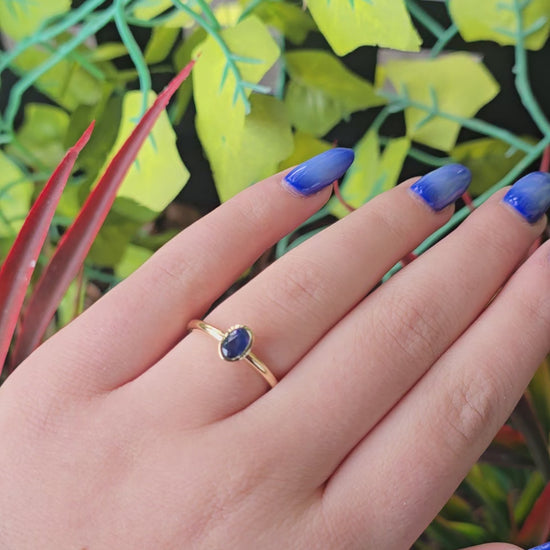 Blue Sapphire Solitaire Ring in 14k Gold • Bezel Set Oval Sapphire Engagement Ring
