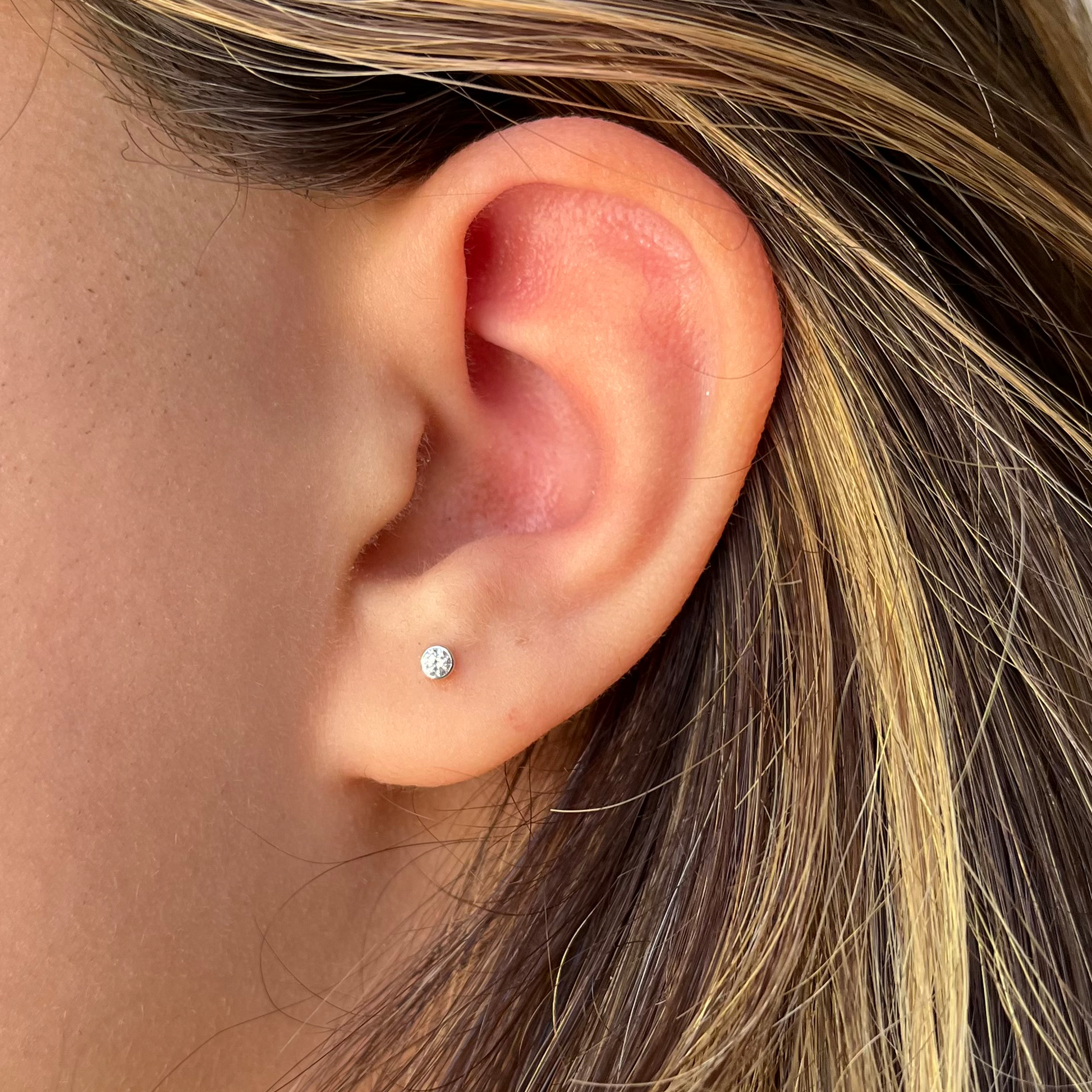 Earrings are sized based on height and width. Studs sit directly on the ear, while hoops and drop styles vary in length. Measurements are provided to help visualize how each style sits when worn.