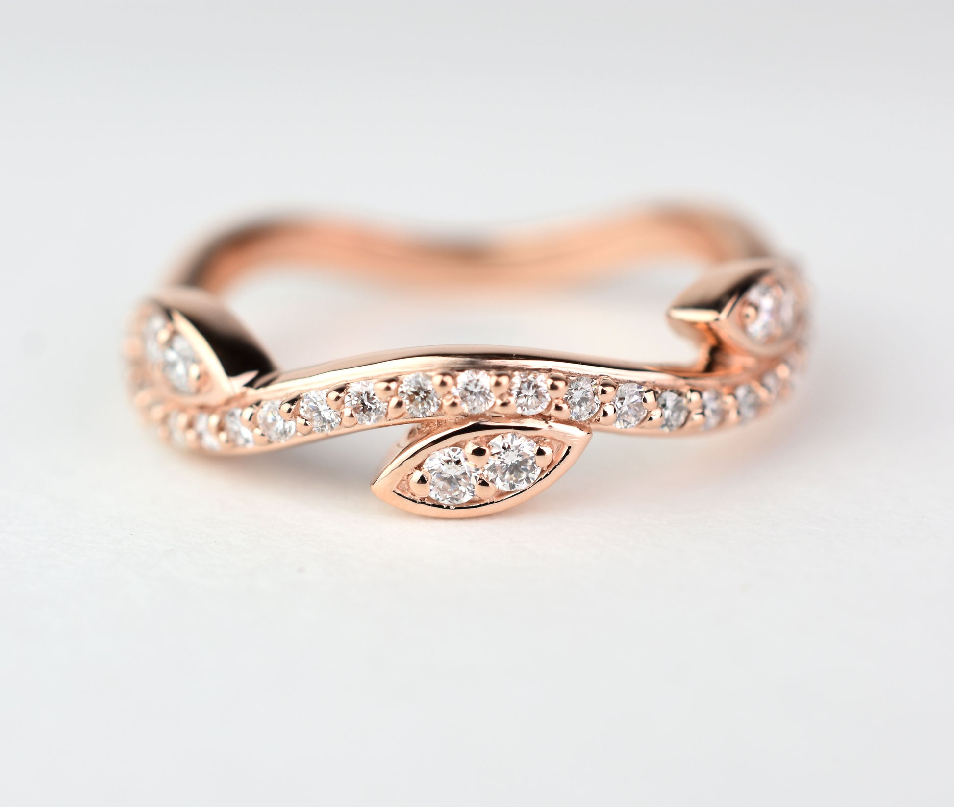Inspired by nature and forged by me. Truly elegant fine lines and crisp and sparkly diamonds form this beautiful design. The ring covers the top of the finger with 3 leaves and the branch twining all around. As usual, it is available in all three colors of gold and finger sizes. Total of 5 mm on top including the leaf.