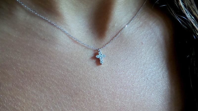STYLE: Small Diamond Cross Necklace/ Minimalist Diamond Cross