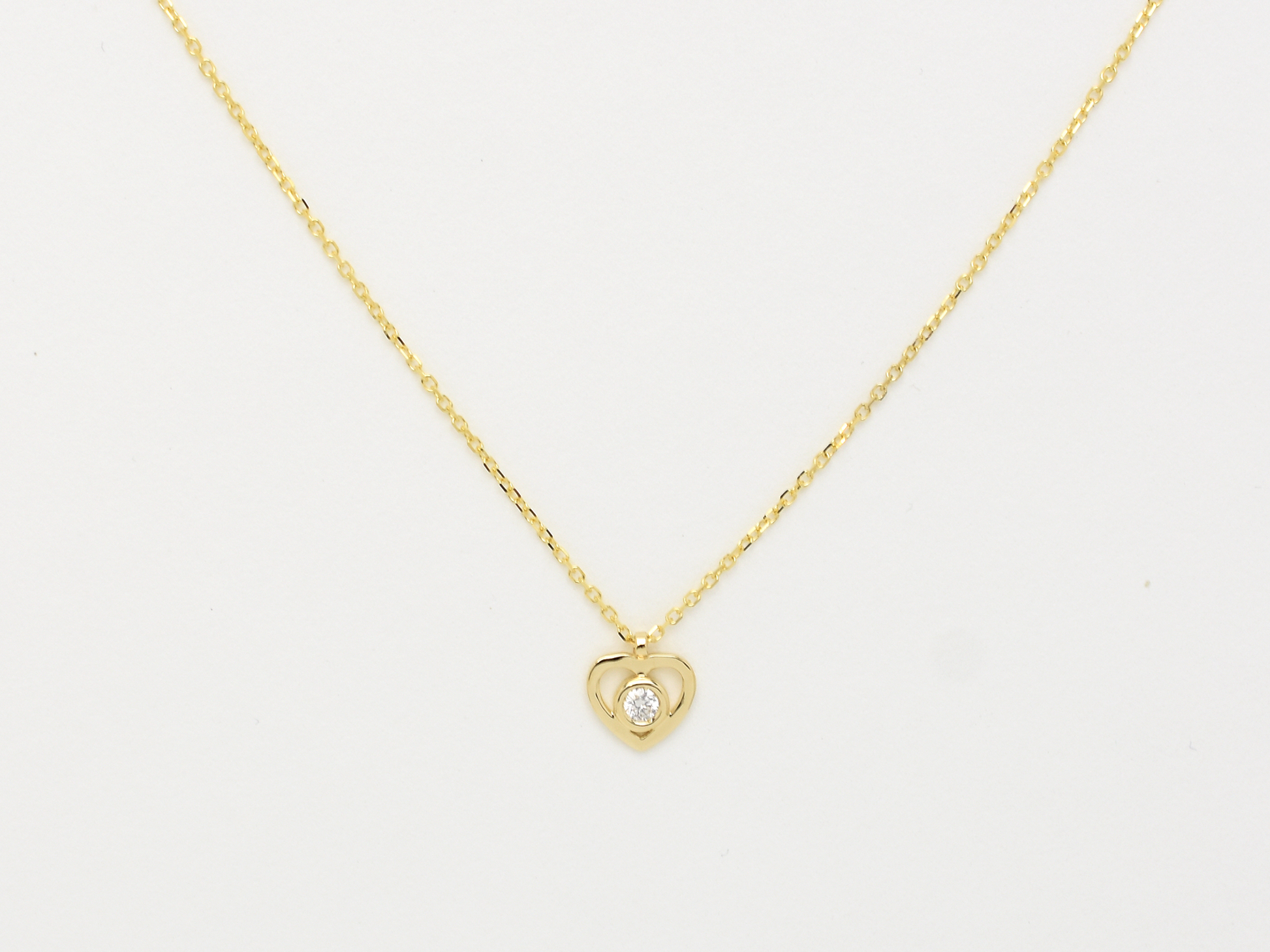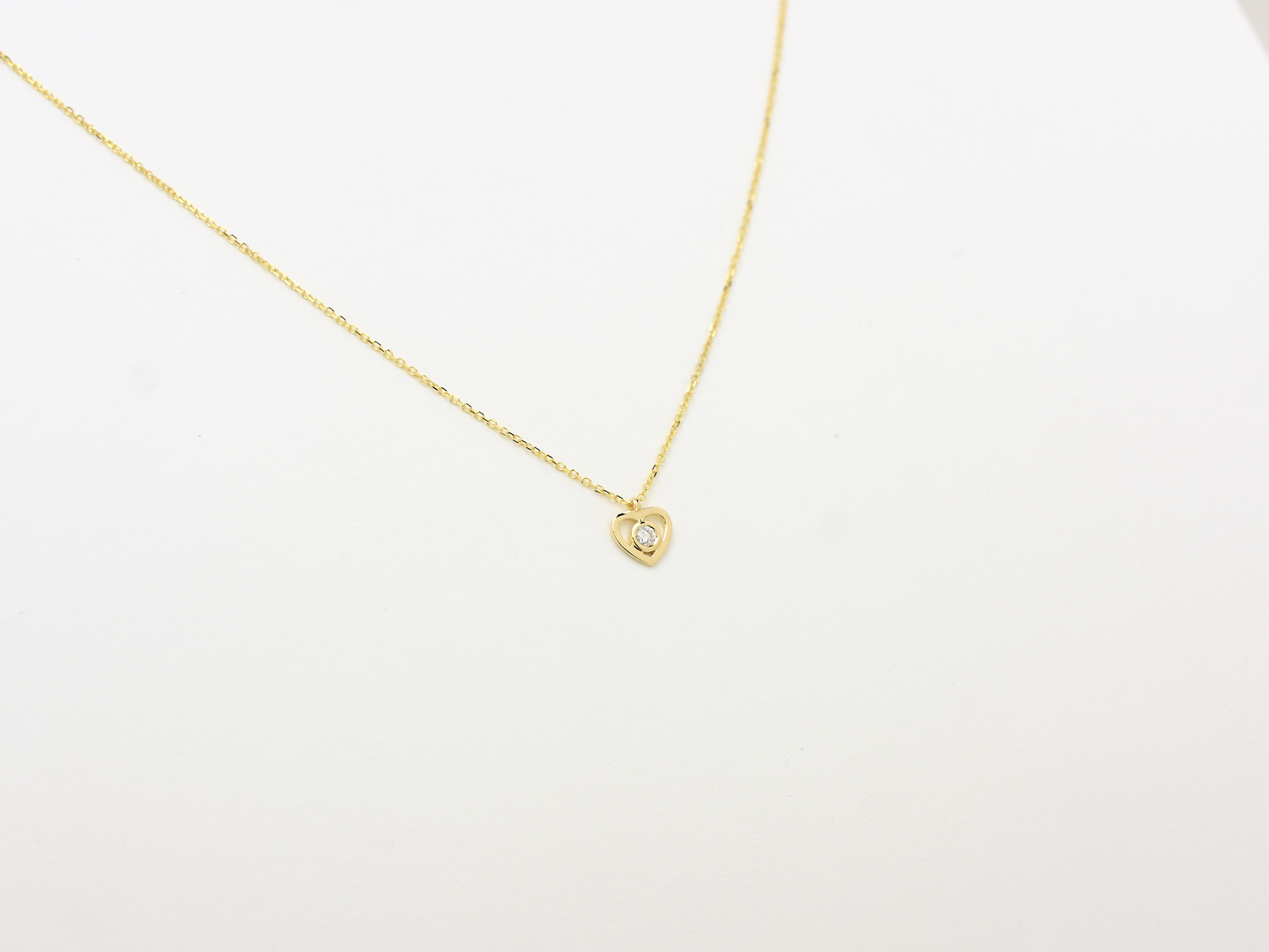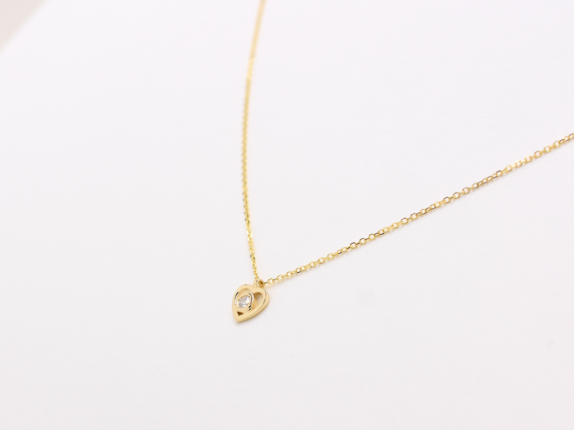 14k gold and diamond heart necklace . Minimal diamond heart for layering and everyday wear with a natural 0.05 carat bezel set diamond . Available in 14k white gold , yellow gold and rose gold.